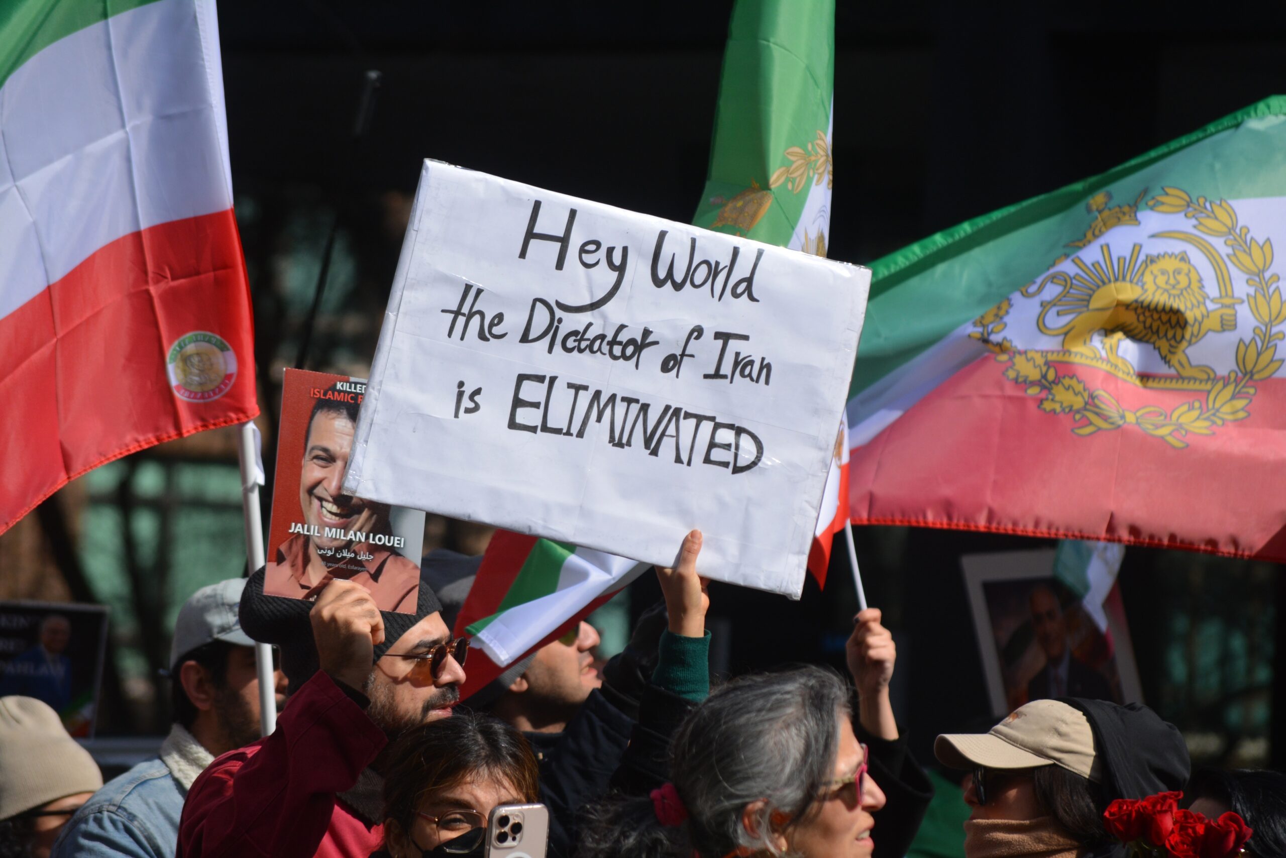 Celebrating the death of Ayatollah Ali Khamenei in New York City (Image: Christopher Penler/ Shutterstock)